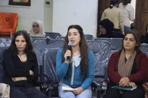 واختتمت الندوة أيضاً بدعو الرفيقة ” بشرى محمد ” المُنسقية في تجمع نساء زنوبيا لقراءة البيان الختامي للحملة النسائية السورية بمبادرة