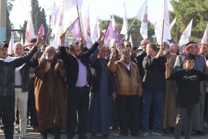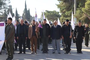 نظم اليوم 2025/11/20 مجلس تجمع نساء زنوبيا في مقاطعة الطبقة مسيرة خاصة بالرجال ضمن حملة مناهضة العنف ضد المرأة وتحت شعار “معاً نبني مجتمع ديمقراطي كومينالي..لإنهاء العنف”، شارك فيها المئات من رجال المقاطعة، إلى جانب ممثلين من مؤسسات ومجالس الإدارة الذاتية الديمقراطية، إضافة إلى القوات الأمنية في المقاطعة