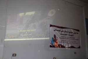 وتلاها عرض سلفزيوني من قبل التجمع لجنة الإعلام عن العنف ضد المرأة واشكالها على نساء سوريا وكيف تعاني