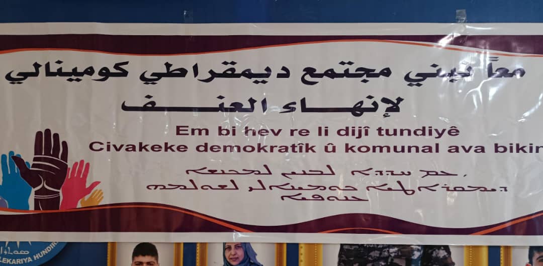 عقد مجلس تجمع نساء زنوبيا صباح اليوم 2025/11/23 في مقاطعة الطبقة محاضرة توعوية ضمن حملة مناهضة العنف ضد المرأة و تحت شعار ( معاً لبناء مجتمع ديمقراطي كومينالي لإنهاء العنف ) في بلدة المسكنة، بمشاركة عدد من ممثلات و ممثلين المؤسسات المدنية و حزب سوريا المستقبل و الحماية الجوهرية و البلدية و الطاقة و قوى الامن الداخلي، بهدف تعزيز الوعي و المجتمعي بقضايا المرأة و دورها في بناء المجتمع الديمقراطي.