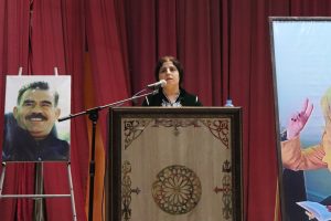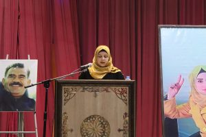 عقب ذلك، تمت قراءة رسالة القائد عبد الله أوجلان الموجهة إلى النساء، ألقتها ناطقة دار المرأة في مقاطعة الطبقة “مريم العبد”